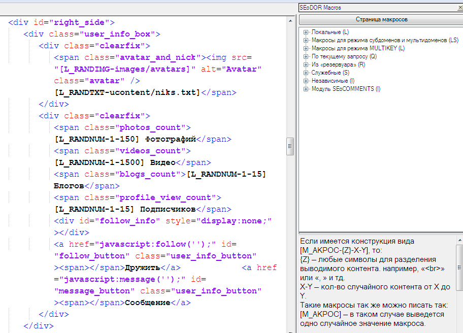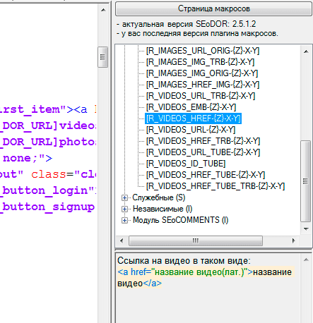 Данный плагин для текстового редактора Notepad++ позволяет вставлять макросы SEoDOR'a в шаблон двойным кликом мыши.